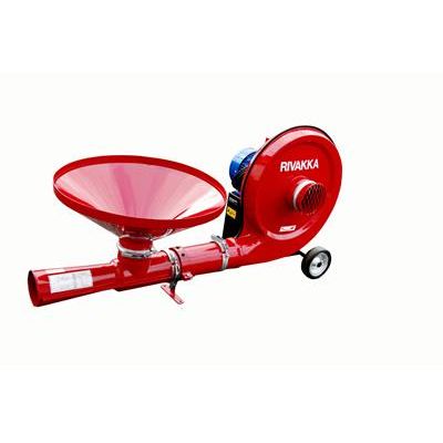An inexpensive device for transferring grain. Grain is drained into a dump hopper below which is an injector. From there the grain is carried along with the blower stream and moves forward through the pipes. With the aid of its wheels, the blower is easy to move. Available in two different sizes 5.5 kW or 7.5 kW