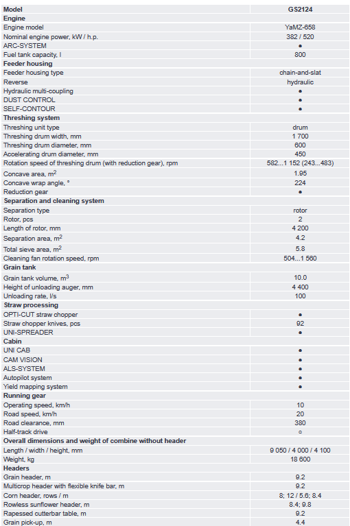 Grain harvesting combine GOMSELMASH GS2124 is the perfect combination of efficiency, comfort and customer wishes.