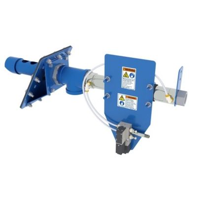 - mounting assembly to fit the bottom of an inclined spout or bin