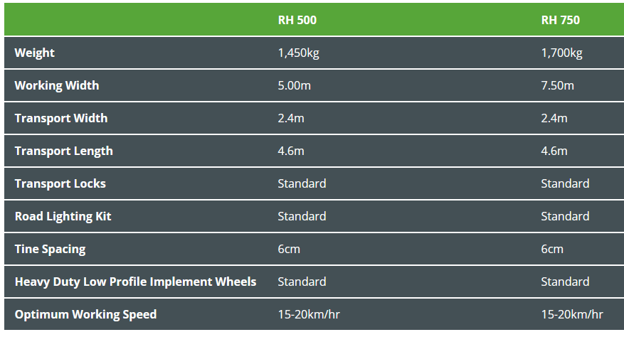 The harrow features five rows of extra stiff 28” tines, that offer higher frequency vibration which enhance the shatter action making it ideal for accelerating straw decomposition and stimulating weed chit in stubbles.