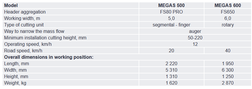 MEGAS harvesters are designed for mowing seeded and natural grasses. Harvesters provide copying of the field relief in the longitudinal and transverse directions at a given cutting height.