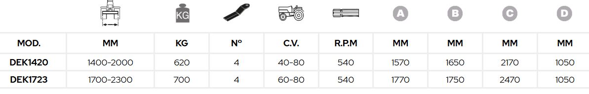 - Side chutes for discharge of grass (mod. de DEK1420 to DEK2434).