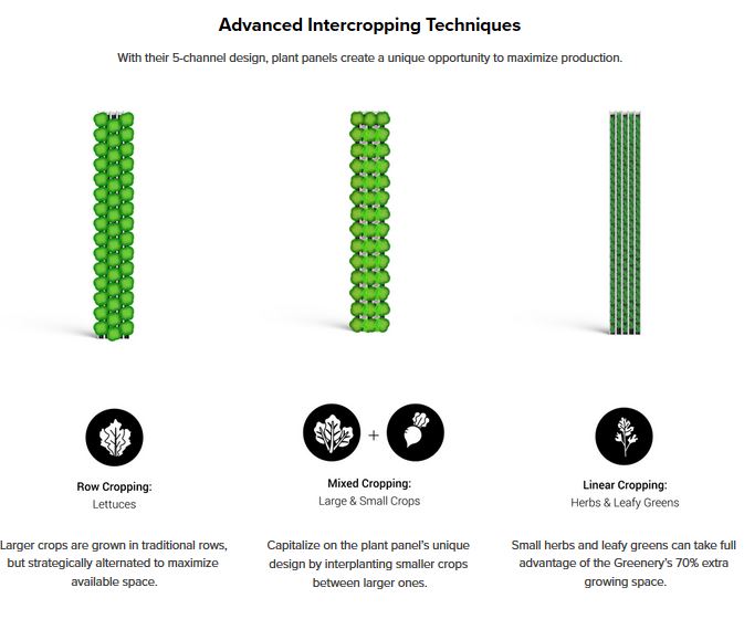 Unique 5-channel plant panel design replaces traditional crop columns to unlock more growing space within the same small footprint. Unlike crop columns, plant panels reduce and repurpose unusable space, turning it into fertile ground.