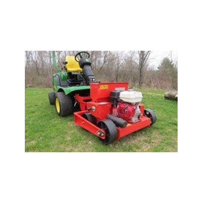 Simply activate the metering drum and slitting rotor by lowering or raising one lever. The W-24 over seeder is powered by a reliable 9 HP Honda engine. Clean slitting on established turf, as well as, on bare turf.
