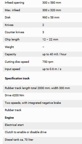 Own hydraulic cooling system. Less power needed because the infeed is at an angle. Milled disc: disc is even sunken towards the next blade resulting in high infeed speed with minimal resistance.  All machines are manufactured out of premium steel 355 (52-3). Easy to maintain.