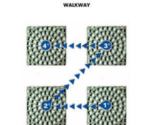 The first example in the graph regards the most common case, that of creating a grassy path. The flooring must be developed in such a way so as to face the vehicle transit with the lower surface: thin ribs facing upwards in direct contact with the vehicle wheels.