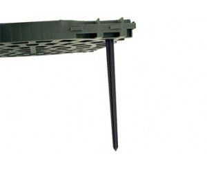 Deeply penetrating stakes to anchor the grating on slopes.