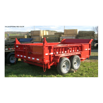 Griffin 7` Wide Dump trailers standard equipment: dual 4` hydraulic rams, dual function rear gate (barn door and stone spreading), 6` HD loading ramps, 10 gauge walls and floors, 24` sides with stake pockets, 5 welded D-rings, head pan for optional tarp kit, battery included.