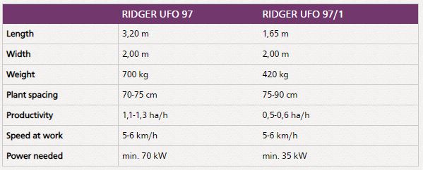 Designated to care works with growing potatoes on light and normal soils. Good, strong construction of the machine provides fast work with optimal shape of colter, which is helpful for potato development.