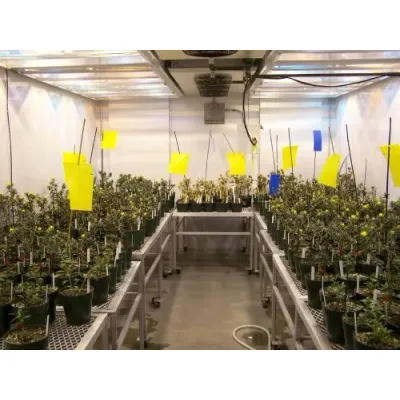 The GR Series Growth Rooms provide an economical solution for the construction of large planting areas. Utilizing ceiling-mounted air distribution systems, these growth chambers do not require insulated flooring, effectively reducing per square foot installation costs. Key features include a center aisle design, adjustable counterweighted light canopies, microprocessor controls, and single-point service connections. These rooms are equipped with configurable plant carts or benches, high-intensity lighting, and a range of control options tailored to specific needs. Constructed with non-barriered light canopies and enamel-coated aluminum surfaces, the GR Series offers robust wood-free construction. Lighting options include a standard fluorescent and incandescent array delivering 500 µmoles at six inches from lamps, with individually controllable lighting banks for precision control. Customized configurations are possible to meet specific environmental demands.