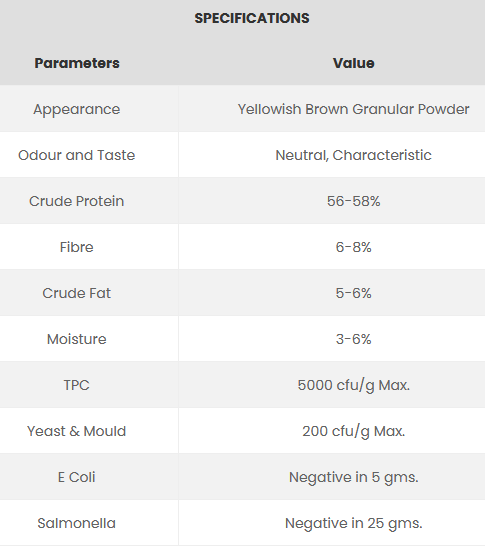 Guar Korma is the bi-meal product derived from the milling of guar seed (cymopsys Tetragonolobus) and removal of guar gum and basically constitutes the germ part of the seed. The product is in granular form of size 2-3 mm and is an excellent protein (exceeding 45%) food for animals, cattle and poultry with high protein solubility of >85% which significantly enhances the nutritional value of the feed.