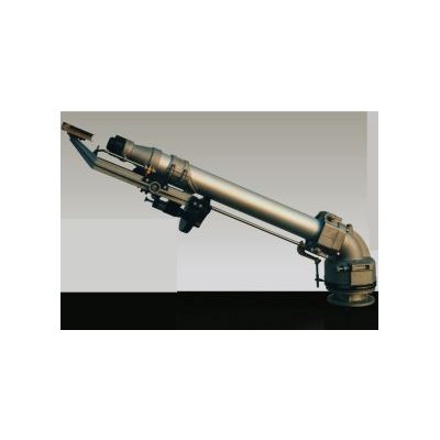 Slow reverse raingun with variable jet-angle for high capacity rotating at full or part circle. Suitable for watering machines or normal installations, particularly in windswept land, fields with low elettricair-lines at high voltage and for fertilization.