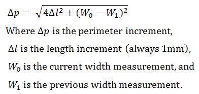 The perimeter increment is calculated and added to the perimeter accumulator. The perimeter increment is calculated using the function:
