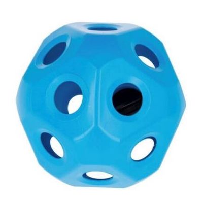 Swinging ball toy for calves. The Food Play Ball must be used only in the stable, pasture, or paddock, and under supervision. with 19 feed openings durable UV-resistant plastic for up to 3 kg of hay. Filled via 116 mm filling the opening with a screw cap. Can also be hung on a cable or chain. We recommend hanging using a chain.
