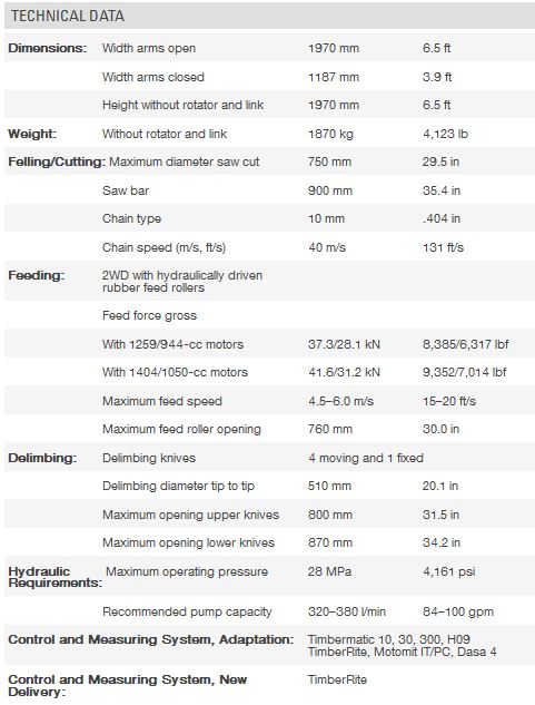 The Waratah H290 is a powerful, high-capacity new-generation harvester head. Built for superior performance in regeneration harvesting, it was specially designed for use with large wheel-and-track-based harvesters. The H290 features the highly efficient SuperCut 100 saw unit and can fell and process trees up to 760 mm (29.5 in.) in diameter. The SuperCut saw unit minimizes bucking damage, and with its integrated automatic chain lubrication and tensioning system, improves cutting performance while reducing maintenance time. The optional color marking system improves accuracy and ensures low dye consumption. Four moving delimbing knives and one fixed, adjustable top knife follow the contours of the stem. The geometry of these knives ensures excellent delimbing quality — from large diameters down to small top diameters. New dual-speed feed motors, with an enormous feed force of up to 41.6 kN (9,352 lbf), handle large-volume harvesting with optimum feed force and speed.
