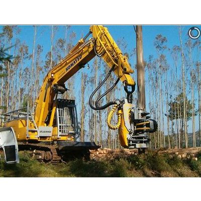 The IGSA 680B is our best bet for those users who need a strong and versatile Harvesting Head. Thanks to a compact design it adapts easily to both pine and eucalyptus. The hydraulic control valve and the motors power of the IGSA 680B are of high pressure what allows us to use all the power of the basic machine. The IGSA 680B is equipped with specially designed feed rollers to get as little damage as possible to the wood. The rollers consist of oblique and fluted strips that achieve a great result in each pass of debarking. It is recommended a forest processor of large wheels or medium size chains. It has a support for hydraulic connection of the rotating and oscillating head. Hydraulic and automatic drive measuring wheel. Flexible protected against chafing and cuts.