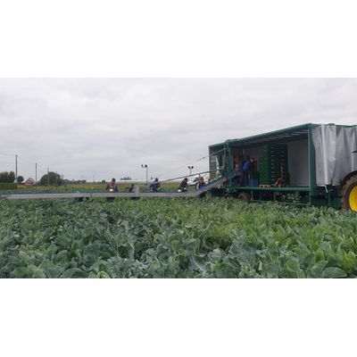 Characters: Length of wagon 6 – 10 m. Lenght of belt 6 – 12 meter. Harvesting belt, movable along the wagon. Tandem chassis, wheels can be steered hydraulically (track following). Harvesting belt, folding along the wagon. Multiply wooden front & rear wall. Hydraulic drawbar steering. Hydraulic support leg with hand-pump. Hydraulic or pneumatic brakes.