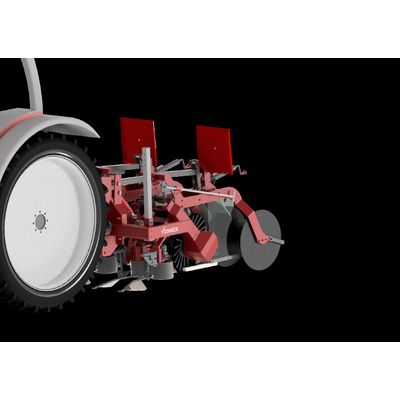 Via the spring-loaded haulm guides the haulm is brought to the intake drums along with a small amount of ground that is directed to the pull discs. Next to the pull discs are stainless steel gliders that prevent potatoes from being pulled out of the row. As soon as the flow of haulm with ground leaves the pull discs it is guided to the diabolo rollers which then gently press the loose ground. The result: Well-covered potatoes and a well-closed rows which are resistant against weather influences.