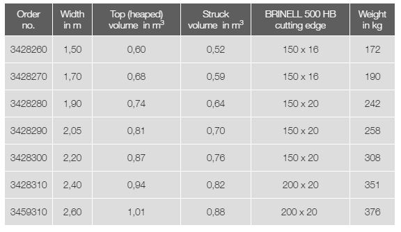 ROBUST S is the heavy series for all work involving heavy and sticky loads such as wet earth or even snow. Thanks to its tapered form and the side bucket walls, which open to the front, the load can slide easily out of the bucket.