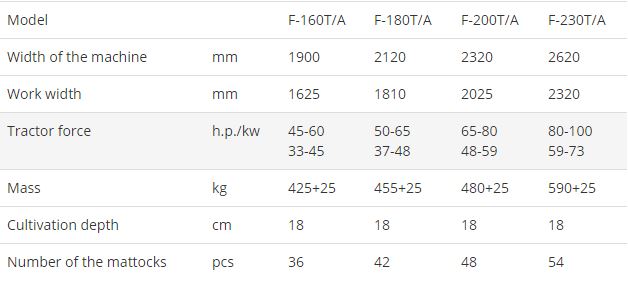 The soil cultivating tillers – heavy type are designed for fused pre-sowing soil cultivation and between the rows of perennial plants, ploughed and not ploughed areas with slope to 8° and clean of stones. They are used at heavier soils.