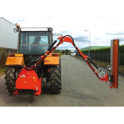 Hydraulic hedge trimmer adaptable to tractor from 30hp. The COBRA hedge trimmer designed and produced by COCHET is ideal for trimming all country hedges, hornbeam hedges and cedar hedges. It adapts to the rear of tractors from 30hp. Fitted with a professional rotating blade, the COBRA hedge trimmer can cut 1m60 on each pass. It does not clog and effectively ejects pruning rejects above hedges. Very powerful you can cut hedges or fruit tree branches up to 3cm. Characteristics Adaptation in 3 rear points Teleflex cable control Hydraulic power unit as standard Vertical cutting height: 5500 mm Horizontal cutting height: 3800 mm Offset on the right side: 2400 mm Cutting width: 1.60 m Floating safety on the cutter bar in the event of light effort Maximum cutting diameter: 30 mm Minimum weight of the tractor : 900KgWeight: 380kg.