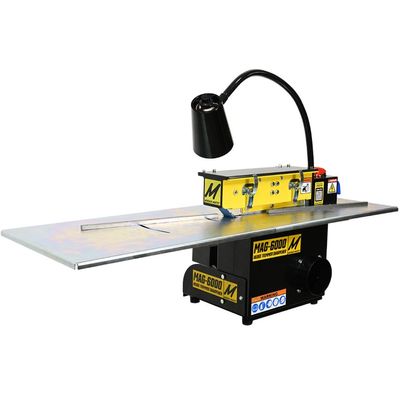 Unlike other methods including die grinders or generic belt sanders the MAG-6000 provides a huge table surface to keep the blades flat and supported to maintain edge angle. The blade fences keep the edge depth the same for every tooth