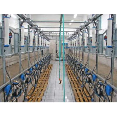 Our Herringbone Milking Parlours are ideal for large herd milking with minimal space requirements. Our herringbone milking parlours provide higher milking rates, maximise space efficiency and fit many existing layouts, making installation simple and economical. The angled rump rails and individual splash guards ensure faster animal positioning, smooth and regular animal traffic and comfortable milking for both operator and animal. Thanks to the rear stall suspended design, the operator has wide access and complete visibility without obstacles over the udder, enabling easier work and early detection of any abnormalities. Our herringbone milking parlours are available in different configurations - 30°, 60° or 70° side milking - and with different options to best suit your needs.