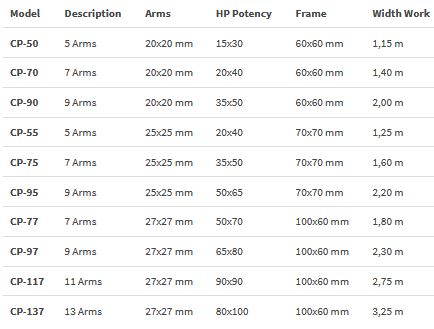 Standard Equipment: Available in 32x32 mm arms. Accessories: CP. Wheelset control for CP models .