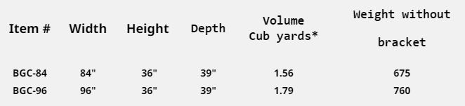 This bucket is ideal for transporting light materials such as sawdust, snow and peat. Considering the amount of use your bucket gets, when it is time to replace it, Cotech should be your first choice for quality and value. Our buckets do not deform, they look and feel like they were built to last. Buckets ranging from 1.56 to 1.79 cubic yard capacity. These units come with a bevelled 6" x 3/4" carbon steel cutting edge and a dual reinforced base. The have a curved dual reinforced bottom guard with 3/8" x 3" steel plate. Additional lateral reinforcement along the entire height of the bucket and the use of our highest quality steel maintains years of integrity. They are available in 7` and 8` widths and are ideal for light density.
