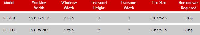 - RCI-108, 8 wheel rake, RCI-10, 10 wheel rake