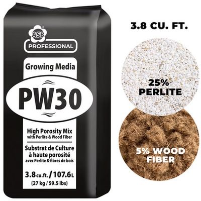 ASB Grower Mix PW30, the ultimate choice for professional growers seeking unparalleled plant performance and exceptional crop yields. Meticulously engineered to meet the exacting demands of commercial cultivation, this premium plant growth substrate combines the finest Canadian Sphagnum Peat moss, 25% perlite, and 5% wood fiber. ASB Grower Mix PW30 boasts superior water retention capabilities, ensuring optimal moisture levels for your crops without the risk of waterlogging. The precisely calibrated 25% perlite content guarantees optimal drainage, facilitating essential air circulation within the root zone to promote strong and vigorous root systems. Additionally, the 5% wood fiber component contributes to the mix`s stable structure, effectively retaining vital nutrients critical for your plants` healthy development.