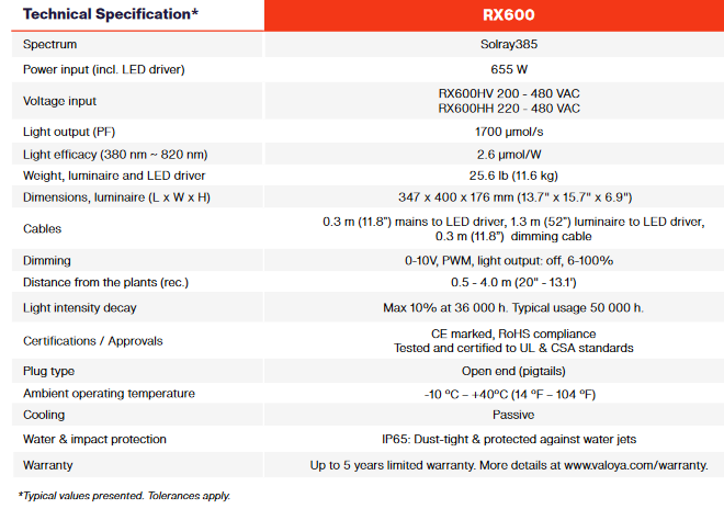 Valoya - Model RX60 -High Power LED Grow Light with Wide Spectra
