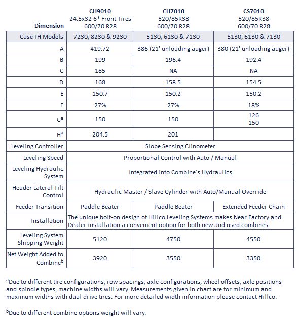 Hillco Leveling Systems are packed with a long list of industry leading features and benefits such astrue bolt-on design, fully automatic variable speed leveling, and fully automatic header height and lateral tilt control.Other benefits includeincreased hillside capacity, reduced hillside grain loss, improved sample quality, and comfortable hillside operation.Additionally, Hillco guarantees that your combine`s original Case-IH warranties will remain in full effect after installation of your Hillco Leveling System.