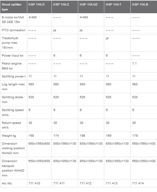 - Models HSP 9K are suitable for short wood up to 58cm