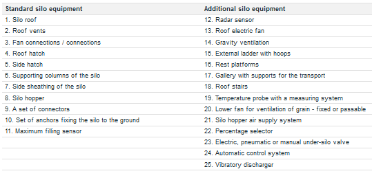 The hopper- bottomed silos with an open funnel are made on load-bearing legs or reinforced concrete pillars. The standard offer includes silos with a hopper angle of 40Ëš, 50Ëš and 60Ëš. The capacity of hopper silos with an open funnel, depending on the selected tank diameter (from 3.8 to 9.6m), is from 32 to 1153 m³, what means maximum capacity of 900 tons of wheat.