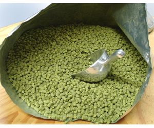 Hops pellets are prepared from leaf hops which have been hammer-milled into a powder and the powder subsequently pelletized by passing through a conventional pellet die and they are similar to rabbit feed pellets; one pound of hop cones can yield about 10 to 12 ounces of pellets. They contain all the vegetative and lupulin material of raw leaf hops and can be used as a full replacement for leaf hops in the brewing process and on average the equivalent amount of hops pellets can impart 10-15% more bitterness than whole leaf hops. Hops pellets are generally packaged under vacuum or in an inert gas such as nitrogen to reduce the rate of deterioration. Their lighter weight and compressed state also make them easier to store and less susceptible to spoilage. Thus hops pellets are preferred by the majority of the craft brewing industry.