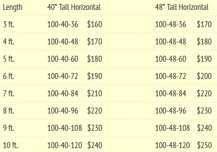 Our standard, most basic panel made with 1” square, 16-gauge tubing and feature radius corners for added safety. Panels have 10” long, radius cornered feet. 40” tall panels have 6 horizontal bars, 48” tall panels have 7 horizontal bars. A vertical support is added on panels measuring 7 foot in length and greater.