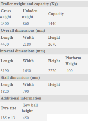 The standard rear ramp has a steel top door that lifts on gas struts; alternatively the trailer is available with the ‘Boston’ option of American doors with two hinged ventilator flaps and short pull out ramp.