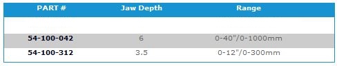 PART #: 54-100-024/. Jaw Depth: 4. Range: 0-24"/0-600mm.