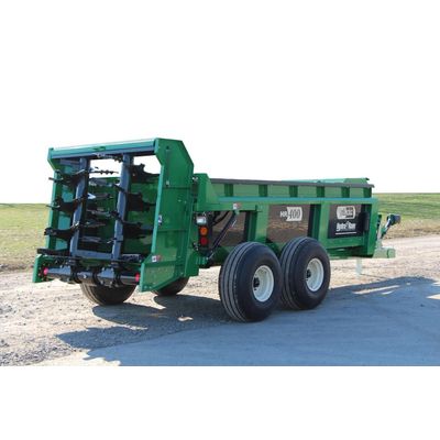 The Pik Rite Hydra-Ram HR 400 spreader has a 400 bushel capacity, outstanding spread pattern and heavy duty gearbox to run both vertical beaters. Those features equate to one promise: dependability. Two-stage hydraulic push technology carries the front portion of the load which greatly reduces compaction optimizing your spread pattern. The aggressively contoured, double curve hydraulic ram fits snugly into the vertical beaters providing optimal clean-out at the end of the load! The quick detach beaters provide versatility for stock piling and a variety of other uses.
