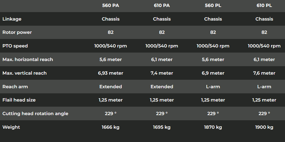 Rousseau - Model Kondor 560 PA | 610 PA | 560 PL | 610 PL Pro -Hydraulic Arm Mower