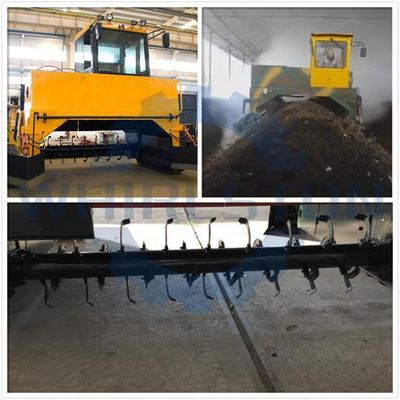 This crawler-type windrow turner machine solves the problem that customers can not afford the machine. Its operation is more easily. Hydraulic direction type is phased out, saving the area, labor and diesel, shortening the working hours and fermentation time. The clutch is a soft start. Most similar products are hard clutch, seriously doing damage to the chain, bearings and shaft. It installs hydraulic push plate without turning composting manually. It is roller hydraulic lift and the cab is equipped with air conditioning. Owing to crawler design, it can work on rough ground.