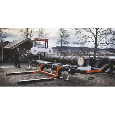- The hydraulics are engineered for heavy logs up to 2000 kg, i.e. the same size logs the band sawmill can handle.User-friendly design with integrated functions. A stable and stylish sawmill!