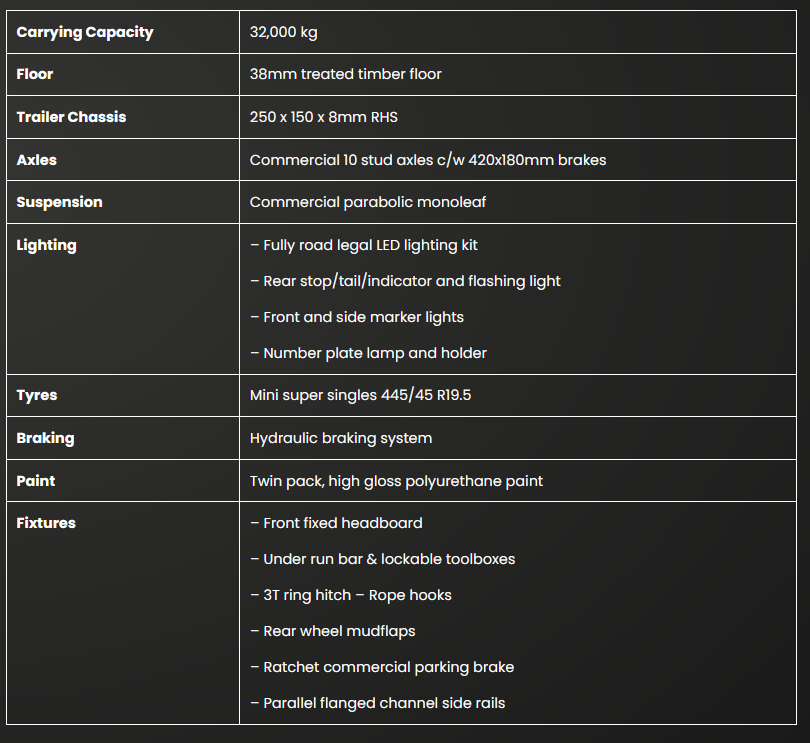 Our Staines Tri axle hydraulic beaver tail Plant Trailer is manufactured using a heavy duty chassis, cross rails to offer full support to the siderails and a sturdy drawbar. Additional ramps are not required as our 8ft section is lowered to the floor at a 20 degree angle by hydraulic rams. This allows the trailer to accommodate any track width of machine. Our beavertail has a lifting capability of approximately 6 ton, which gives you use of the full length of the flat bed. Our new locking system comes fitted with over centre gravity lock, which creates an automatically safe locking system.