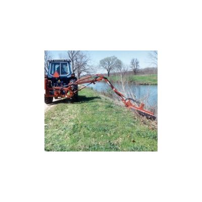 With a maximum horizontal reach of 21` and vertical reach of 22`6", the 2160 outperforms conventional ditchbank mowers in mowing hard-to-reach areas. The 2160 is ideal for mowing pond embankments, levee or drainage ditches, and cutting overhanging limbs on fence rows. A minimum 100 HP tractor is recommended and attaching and detaching of the cutter to the heavy-duty CAT II-III quick hitch adaptable three-point hitch is easily done and requires no mounting kits. A hydraulic relief kit is required for use with tractors without a quick hitch. The 2160 is available as a 540 RPM unit and features a 60" cutting swath, 1/2" x 4" updraft blades, and a blade tip speed of 20,028 FPM for a clean cut. Hydraulic breakaway, plus a reinforced boom and mower head, and a 60 gallon oil capacity for cooler operating temperatures help assure optimum performance and reduced downtime.