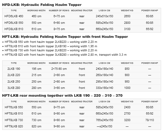HFT6LKB 550 with front haulm topper 2LKB220 – working width 2,20 m