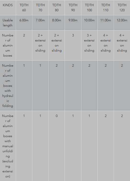 - TDTH 110 and 120: 3rd ALU box with hydraulic unfolding