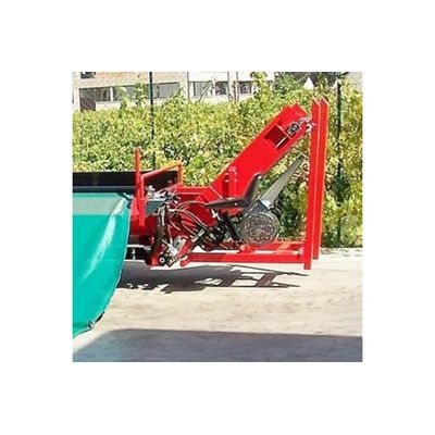 The “CRA6000” model harvesting trolley can be towed by a tractor or hitched directly behind one of our Tornado shakers. All functions are hydraulic and operated by an autonomous pump with oil tank obtained in the frame. It is essentially composed of a roll-up roller and a conveyor belt that conveys the collected product to the defoliator and unloads it into a box. Rear position for trolley control with hydraulic controls. Rear bins holder fork, tiltable.