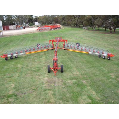 Standard rakes may be customised by adding the following options: Rear wheel steering. Dual wheeled back-end. Hydraulic hand pump. Splitter assembly 2 reels, 4 reels. Dual castors on raking arms. Heavy duty rear knuckles & trunnions.