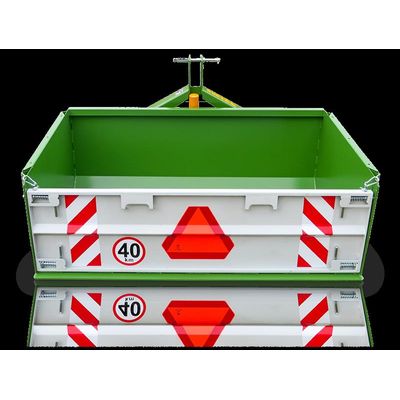 The hydraulic scoops are used for loading, transporting, and unloading various types of bulk and piece materials. Unloading is provided by a telescopic hydraulic cylinder in a single-acting or double-acting design. The load-bearing frame of the scoops consists of the robust framework that allows for transporting loads of up to 2000 kg. The scoops are equipped with a removable swing face as a standard. It has a variable frame design to be attached both to the three-point suspension and the triangular fastener. Extensions to increase the body volume are four-part, including the front part, creating a large-volume compact container. All extension assembly can be done in a very simple and quick way without the use of tools. The scoops can be also attached to the forklift easily.